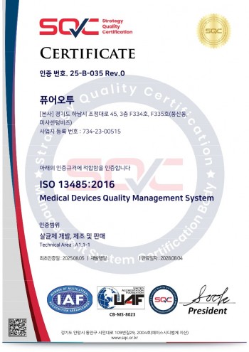 살균 소독력 시험 -한국식품과학연구원(99.999% 이상)